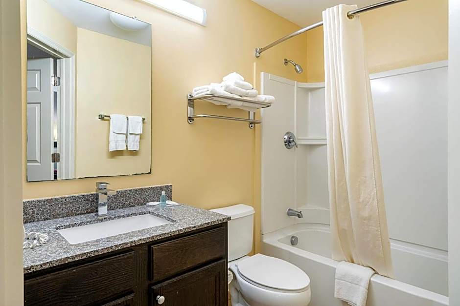 The suite's kitchen, which has a stovetop and a microwave, is available for cooking and storing food.